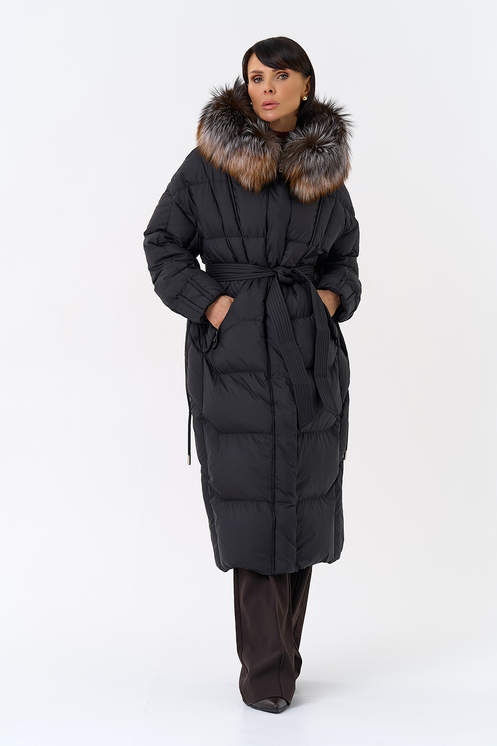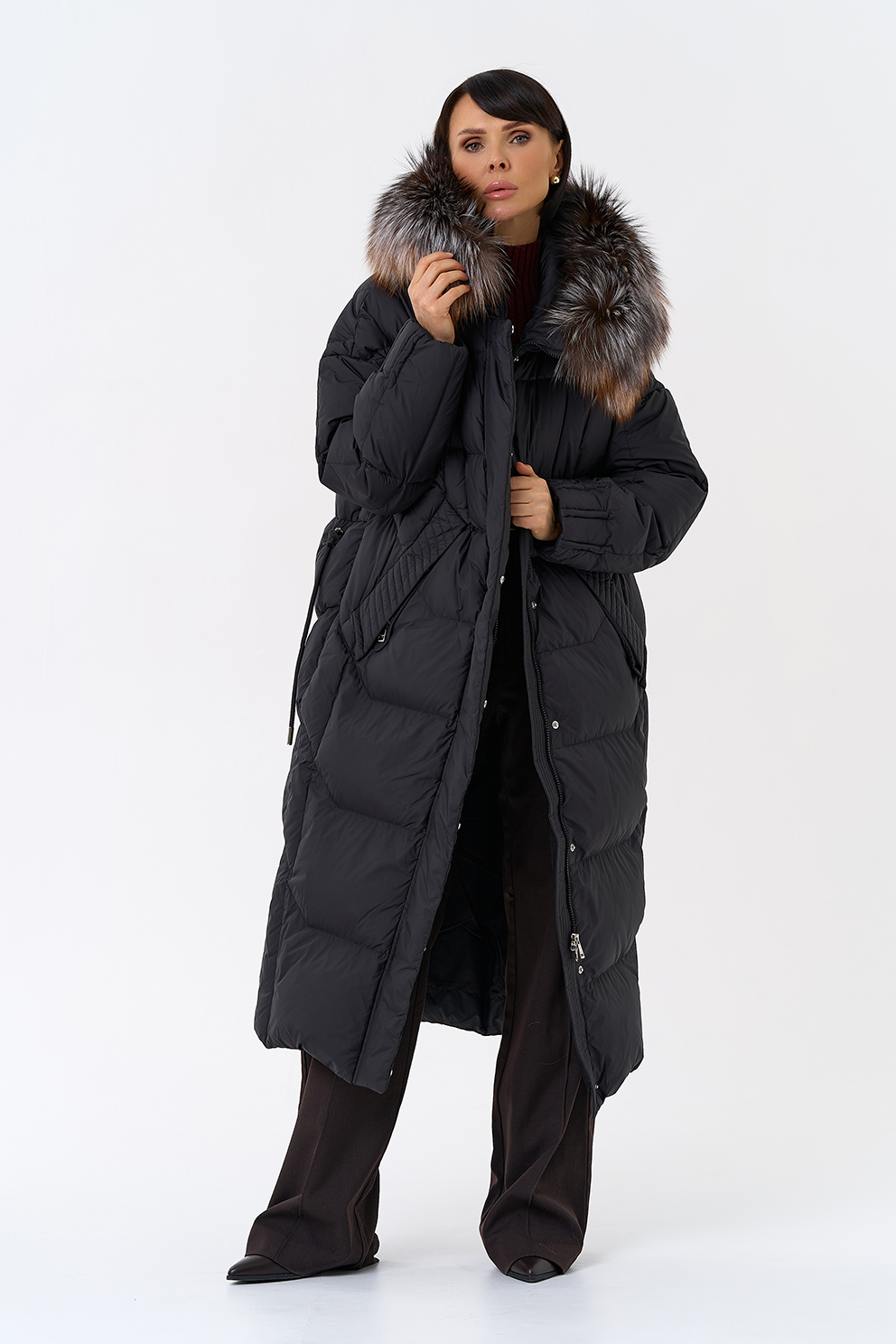 Крой воротника - капюшон, отделка блюфрост