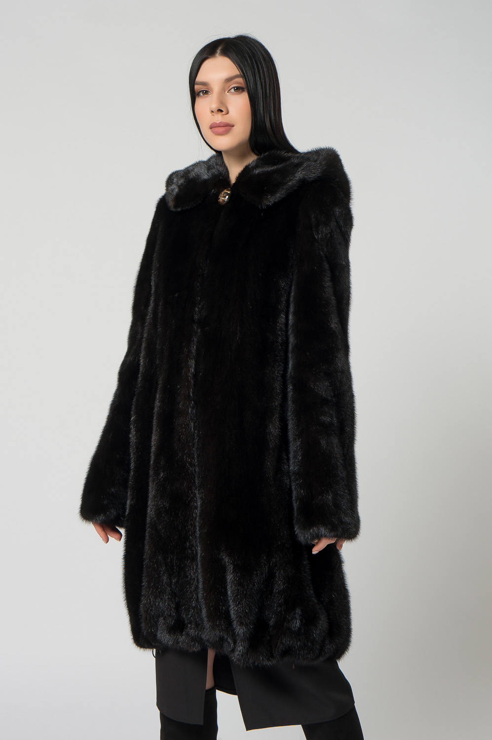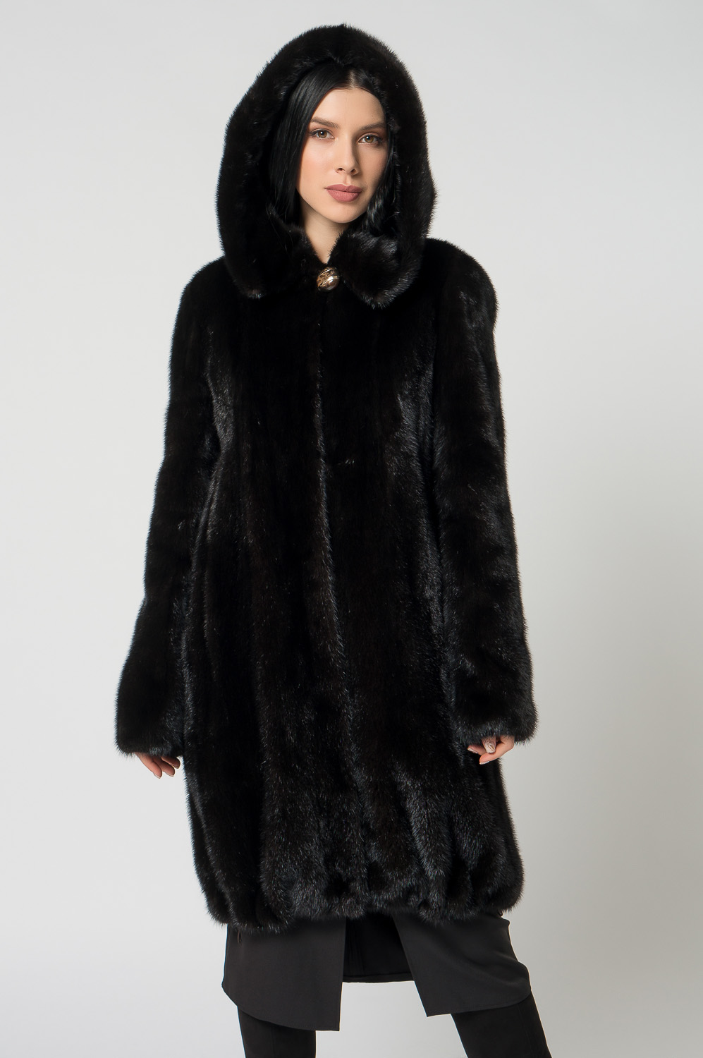 Шуба из норки с капюшоном, кулиска